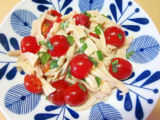 サラダチキンとミニトマトのバジルサラダ レシピ 作り方 By アルプスの乙女 楽天レシピ