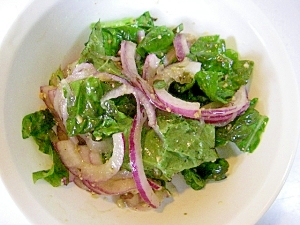 バジルソースで サニーレタスとタマネギのサラダ レシピ 作り方 By ぷ みぃまま 楽天レシピ